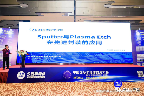 泰研半导体亮相中国国际半导体封测大会,深入探讨Sputter与Plasma Etch在先进封装的应用发表时间:2023-04-04 11:00 「2023年3月21日,中国国际半导体封测大会在上海隆重举行。众多业界领袖、专家和生产厂商汇聚一堂,共同探讨半导体封测的发展趋势。泰研半导体副总方铭国先生在大会上发表了题为《Sputter与Plasma Etch设备在先进封装的应用》的主题演讲,分享了公司在先进封装技术领域的复合工艺应用与优势。」