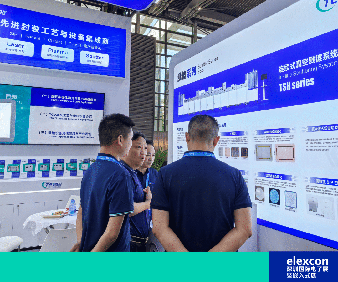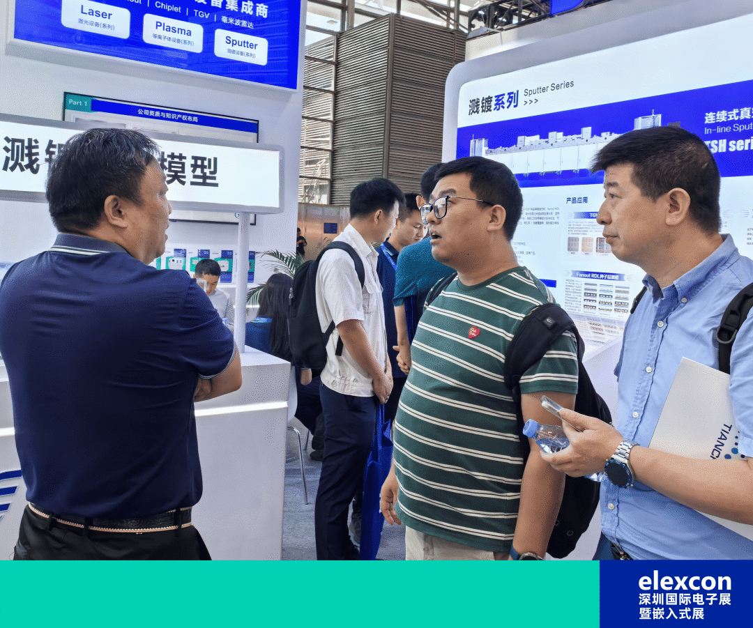 泰研半导体亮相elexcon2025,Sputter镀膜技术引发现场交流热潮发表时间:2025-08-29 11:00 8月26日,elexcon2025深圳国际电子展暨嵌入式展在深圳会展中心(福田)盛大开幕。泰研半导体携连续式真空溅镀系统(TSH系列)及TGV玻璃通孔金属化样品重磅亮相,凭借其高性能技术方案与提升效率、良率的工艺表现,成为展会首日关注焦点。